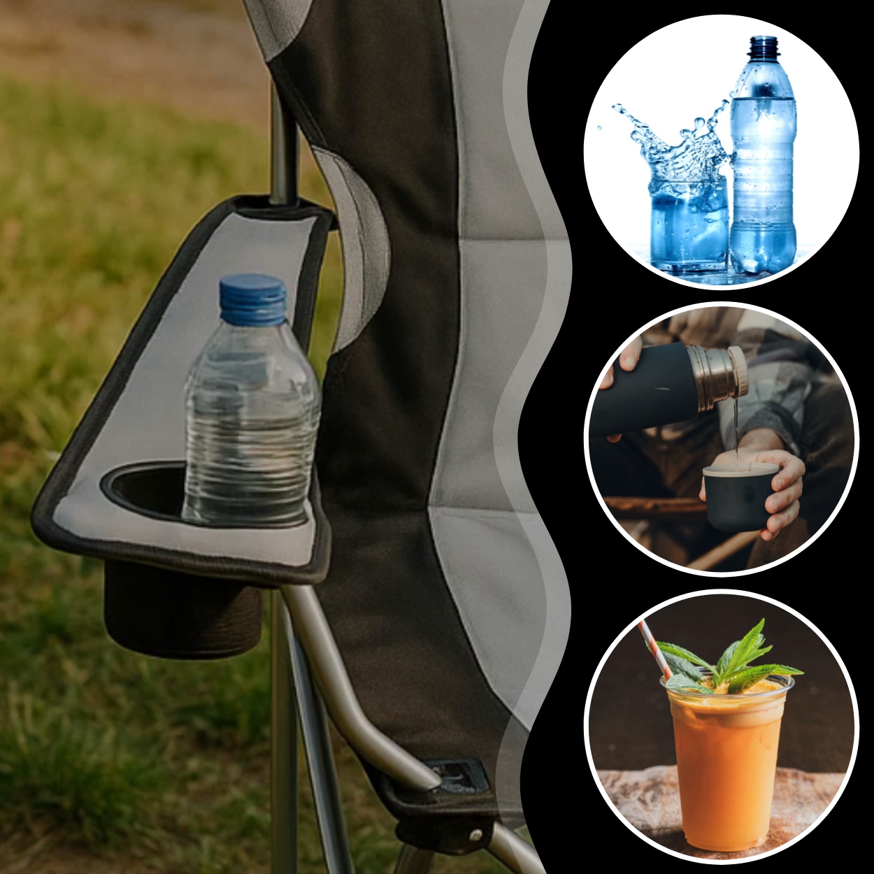 Regulovatelné područky, držák na nápoj a kompaktní konstrukce po složení – vše, co potřebujete k tomu, abyste si mohli vychutnat klid u vody.