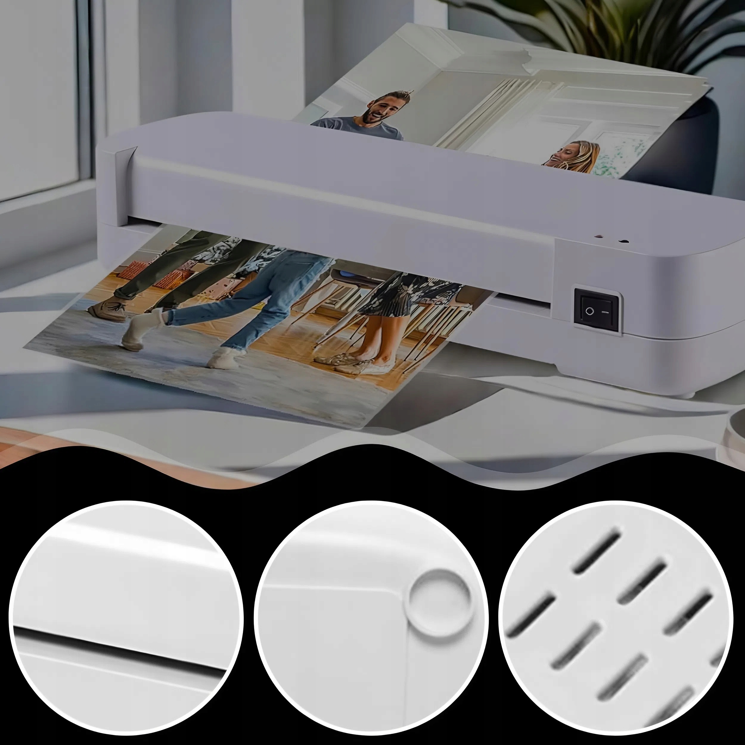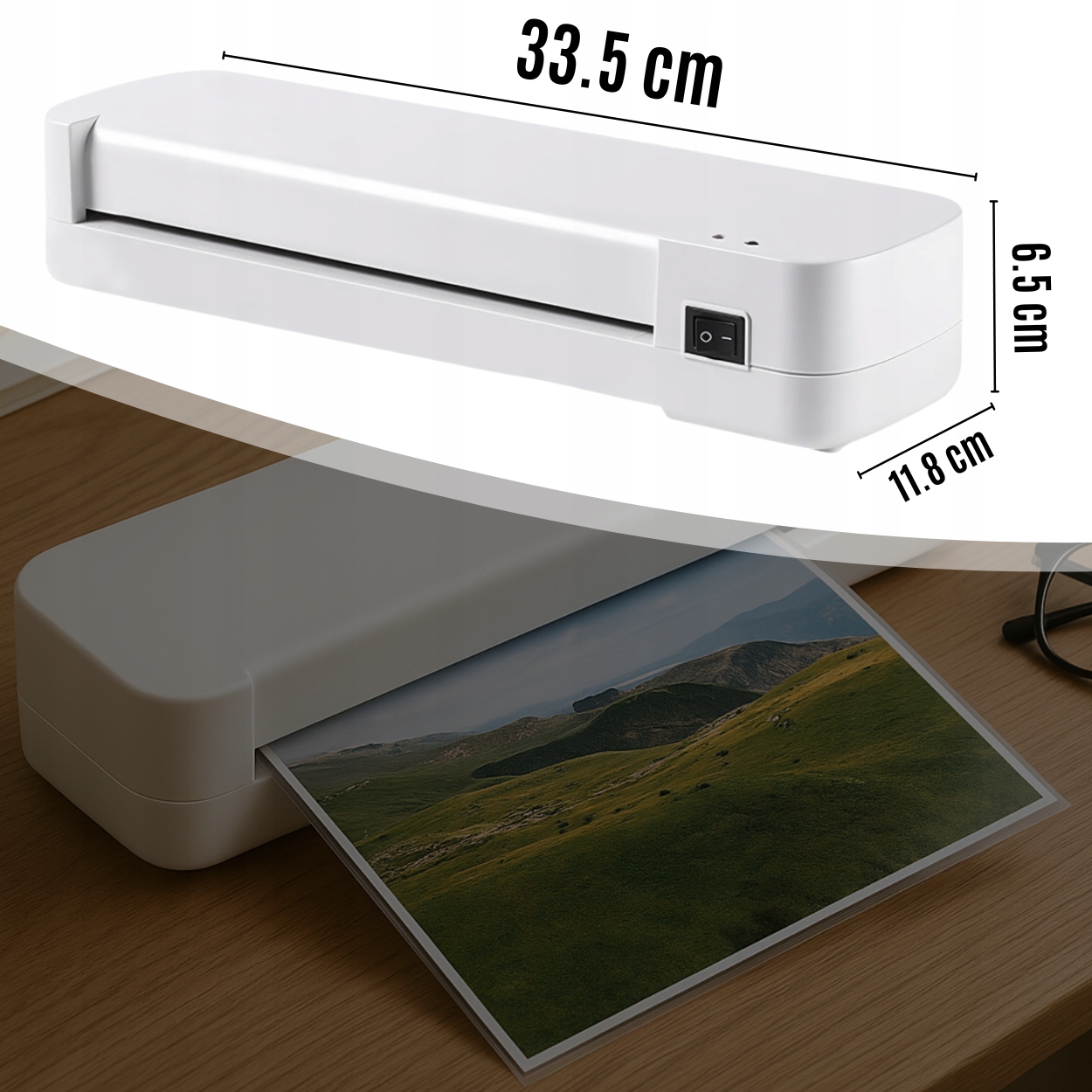 LAMINOVAČKA A4 MINI KANCELÁŘSKÝ DOMÁCÍ LAMINÁTOR PRO LAMINOVÁNÍ FOTOGRAFIÍ DOKUMENTŮ + 10 LISTŮ FÓLIE