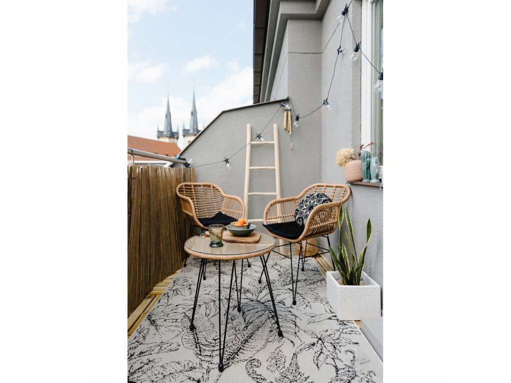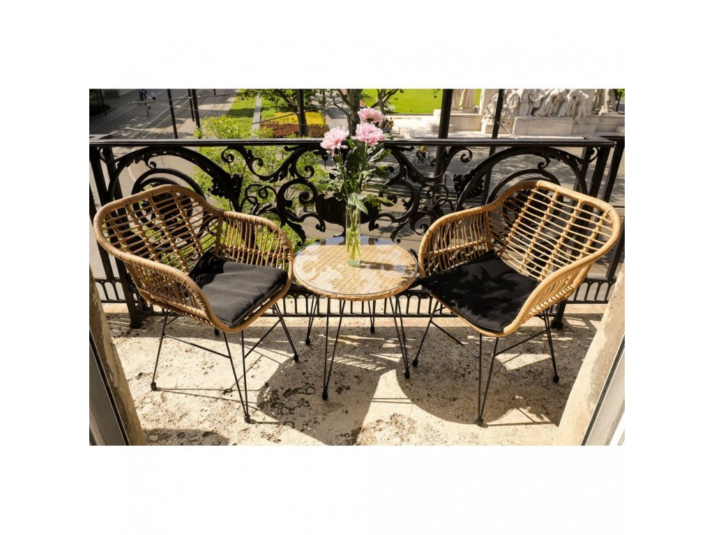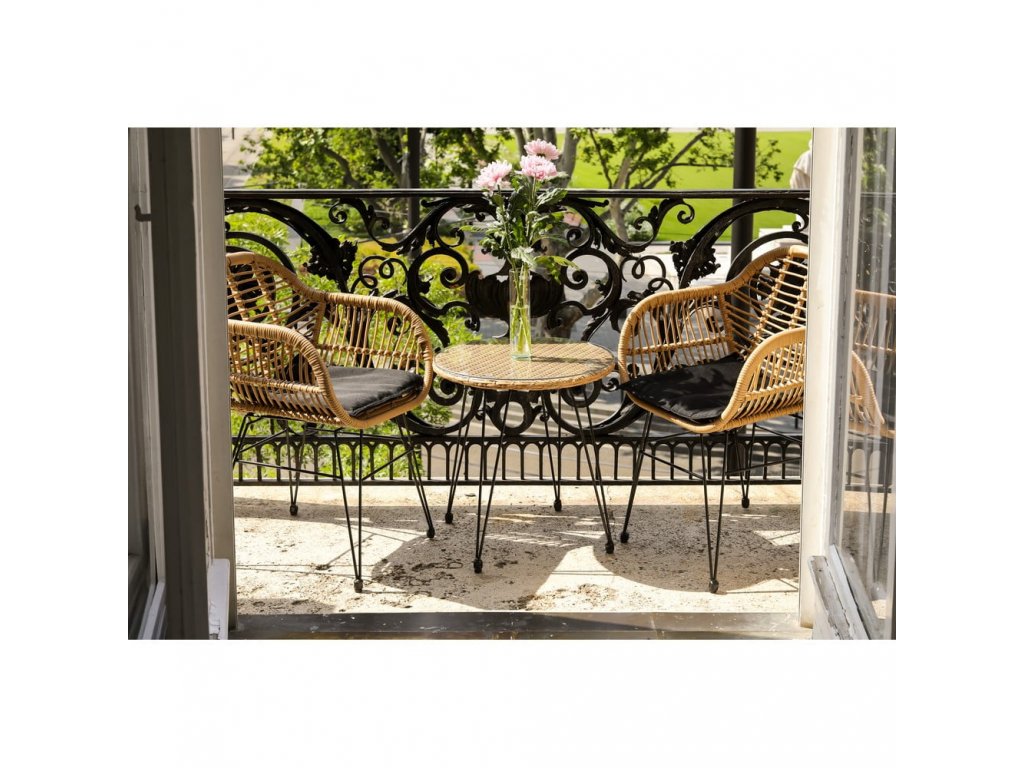 Elegantní set dvou křesel a stolku přináší jednoduchý design a díky kombinaci světlého ratanu a tmavých prvků vypadá skvěle jednoduše všude.