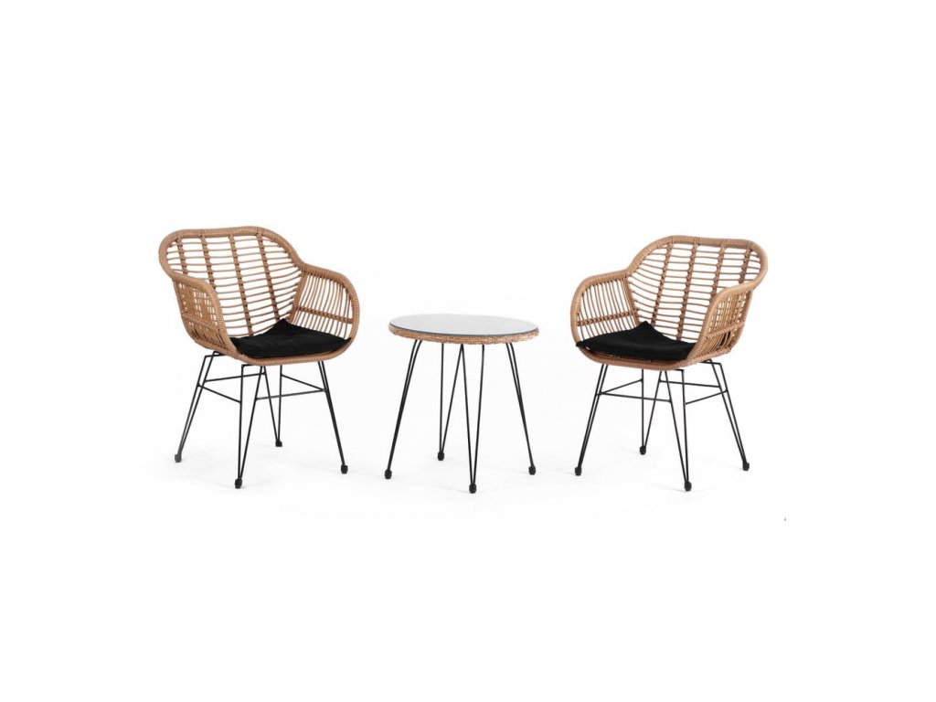 Základem setu je pevná ocelová konstrukce, která byla pro delší životnost ošetřena práškovým lakem proti rzi. Výplet křesel tvoří lehký a odolný umělý ratan. Atraktivní vzhled setu podtrhne 5milimetrová deska stolku z tvrzeného skla. Křesla jsou dodávána včetně pohodlných podsedáků.